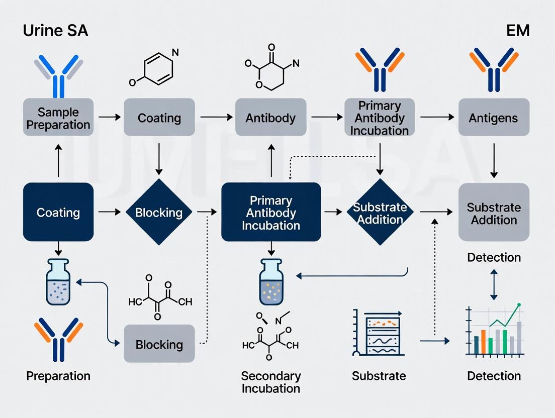 Successfully performing ELISA on urine samples requires a meticulous, tailored approach that addresses the unique complexities of the urinary matrix. By understanding the foundational challenges, following a robust methodological protocol, proactively troubleshooting, and rigorously validating the assay, researchers can generate reliable and meaningful data. This enables the full exploitation of urine as a rich, non-invasive source of biomarkers for mechanistic studies, drug development, and clinical diagnostics. Future directions include greater harmonization of pre-analytical variables, adoption of multiplex and digital ELISA technologies for enhanced sensitivity, and the integration of urine biomarker data with other omics platforms for comprehensive systems biology approaches. Mastering urine ELISA protocols is thus a critical skill for advancing personalized medicine and translational research.